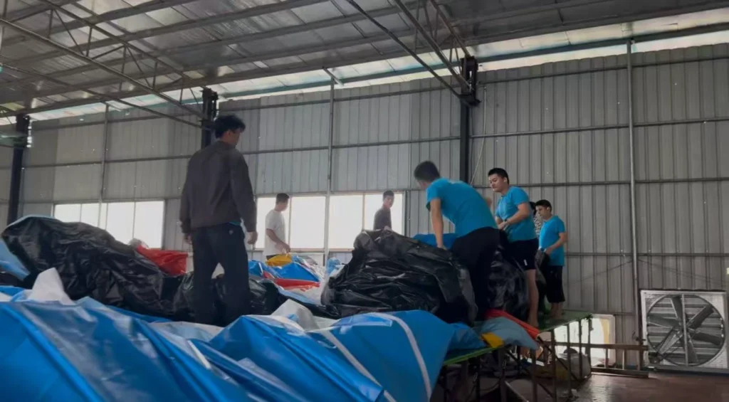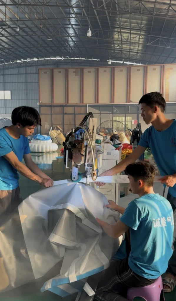 This is where high-quality PVC and other inflatable materials are precisely cut into custom shapes and sizes according to design drawings. Our skilled operators use professional cutting tools to ensure accuracy, minimizing material waste and laying the foundation for seamless assembly.